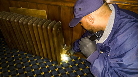 The IPM technician will conduct routine visual inspections of pest prone areas for signs of active pest infestations and for conditions which are conducive to attracting or harboring pests. This helps determine whether treatment is required.